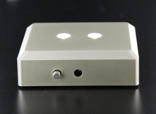 Dieser Leuchtsockel besteht aus einer hochwertigen stabilen Plastik-Gussausführung - ist sehr stabil und hochwertig verarbeitet. Die silberfarbene Lackierung setzt Ihren Glaskristall ins richtige Licht. Zwei hochwertige SMD-LEDs lassen Ihren Glaskristall schön beleuchten - durch den eingebauten Diffusor wird das Licht noch gestreut, so dass wie bei der LED-Beleuchtung üblich nicht nur ein Spot angestrahlt wird, sondern sich das Licht mehr verteilt und der Glaskristall besser ausgeleuchtet wird.