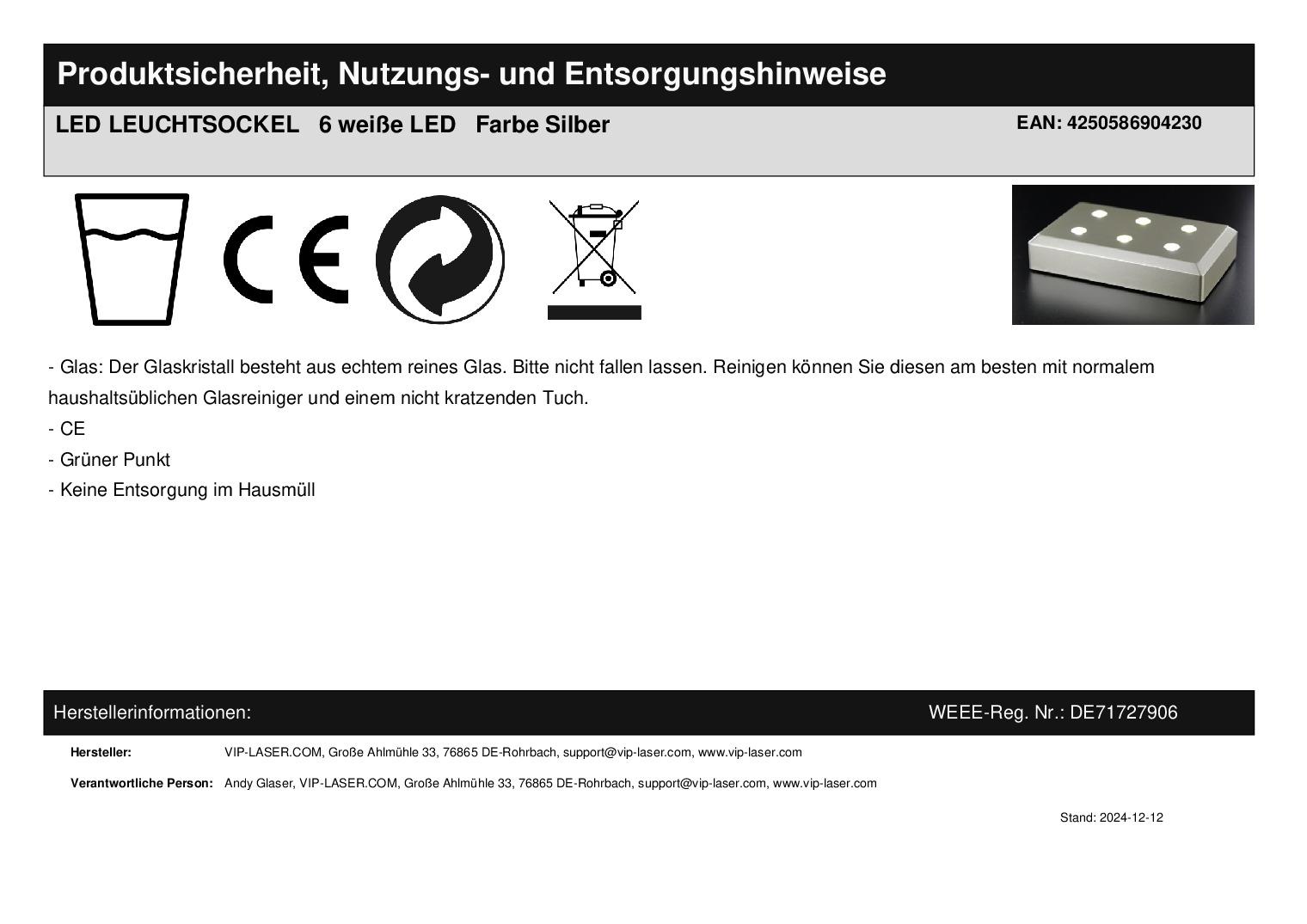 Produktinformationen "LED LEUCHTSOCKEL 6 weiße LED Farbe Silber"